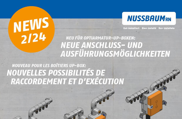 Dank dem neuen Bogen mit Schnellkupplung (Art. 86114.21) lassen sich die Optiflex-Verteiler (Art. 86103) waagerecht an der Optiarmatur-UP-Box montieren und die Verteileranschlüsse können mit geraden Steckabgängen angeschlossen werden. Steckabgänge sind für die Systeme Optiflex-Profix, Optiflex-Flowpress, Aussengewinde ¾" und Aussengewinde MF ½" verfügbar. Diese Sortimentserweiterung gestattet neue Anschluss- und Ausführungsmöglichkeiten für Optiarmatur-UP-Boxen und bietet Ihnen somit weitere Gestaltungsfreiräume für die hygienische und thermisch getrennte Kalt- und Warmwasserverteilung auf der Etage.