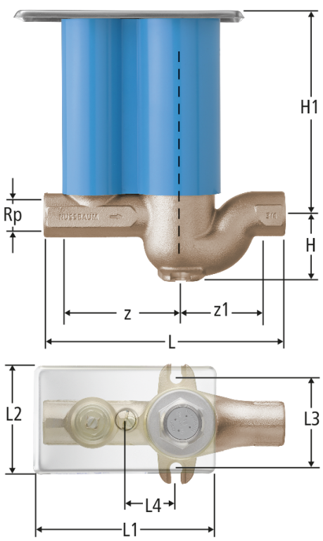 | Rp | z | z1 | L | L1 | L2 | L3 | L4 | H | H1 min | H1 max | Art.-Nr. | VE | RK | VE | suissetec | ||