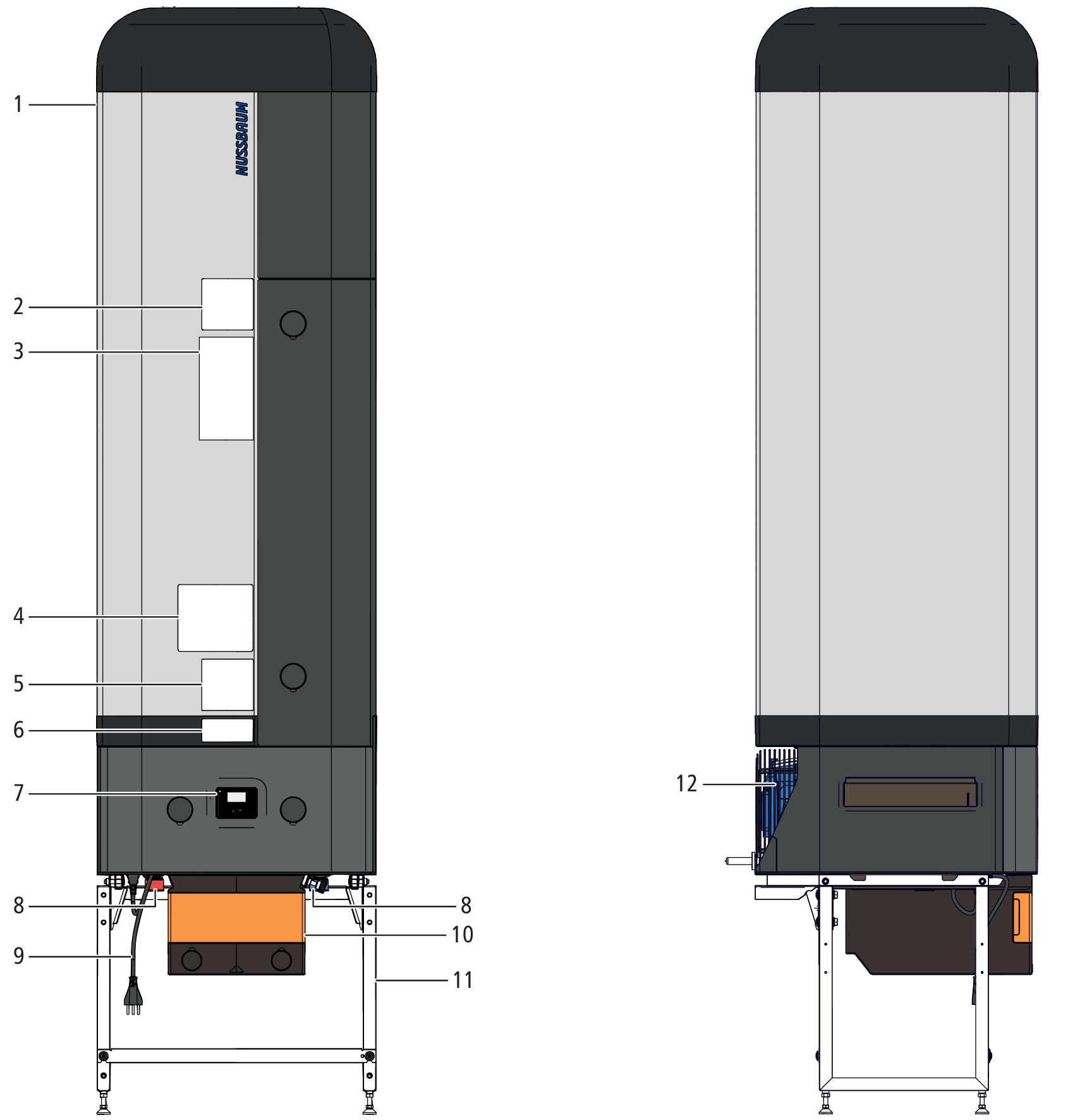 Die Wassererwärmung ist ausgeschaltet. Das Kommunikationsmodul bleibt eingeschaltet, so dass die Fernsteuerung via myNussbaum und Modbus TCP/IP weiterhin möglich ist, wobei Einstellungen erst nach der Deaktivierung der Betriebsart [Standby] aktiv werden. Danach wird die vorangegangene oder zwischenzeitlich eingestellte Betriebsart übernommen. Die Betriebsart [Standby] kann nur am Bedienfeld des Geräts aktiviert und deaktiviert werden. Die Funktion des optional eingebauten Wasserfühlers bleibt jederzeit aufrechterhalten.