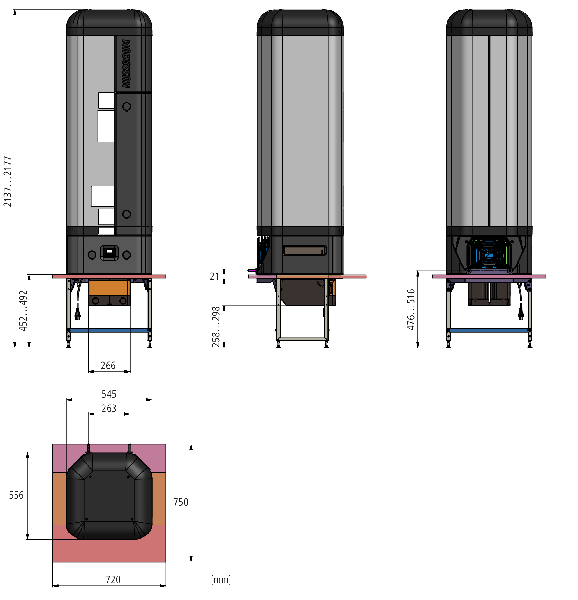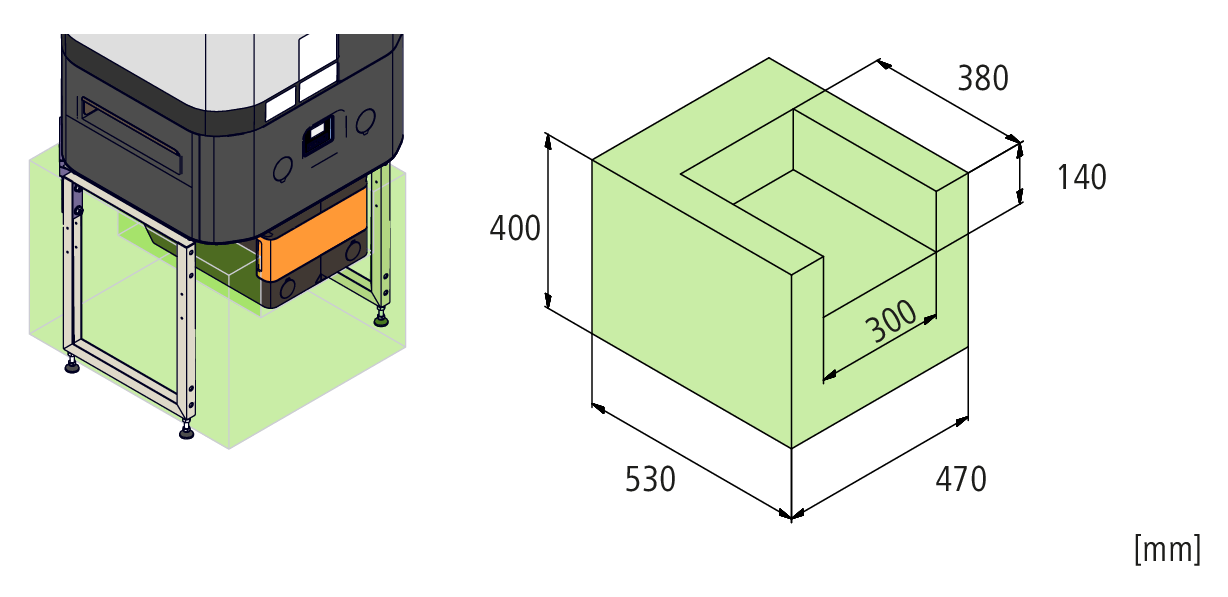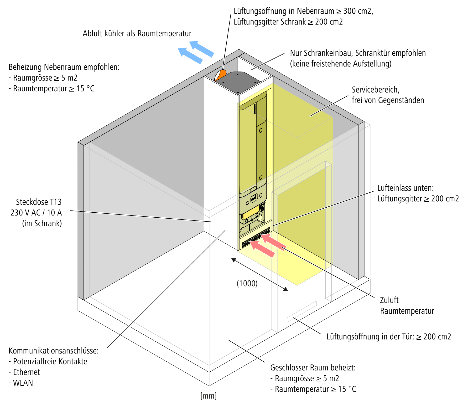 Bauseits ist ein zur Atmosphäre hin offener Ablauf erforderlich, der sich unter oder direkt neben dem Gerät befinden muss.