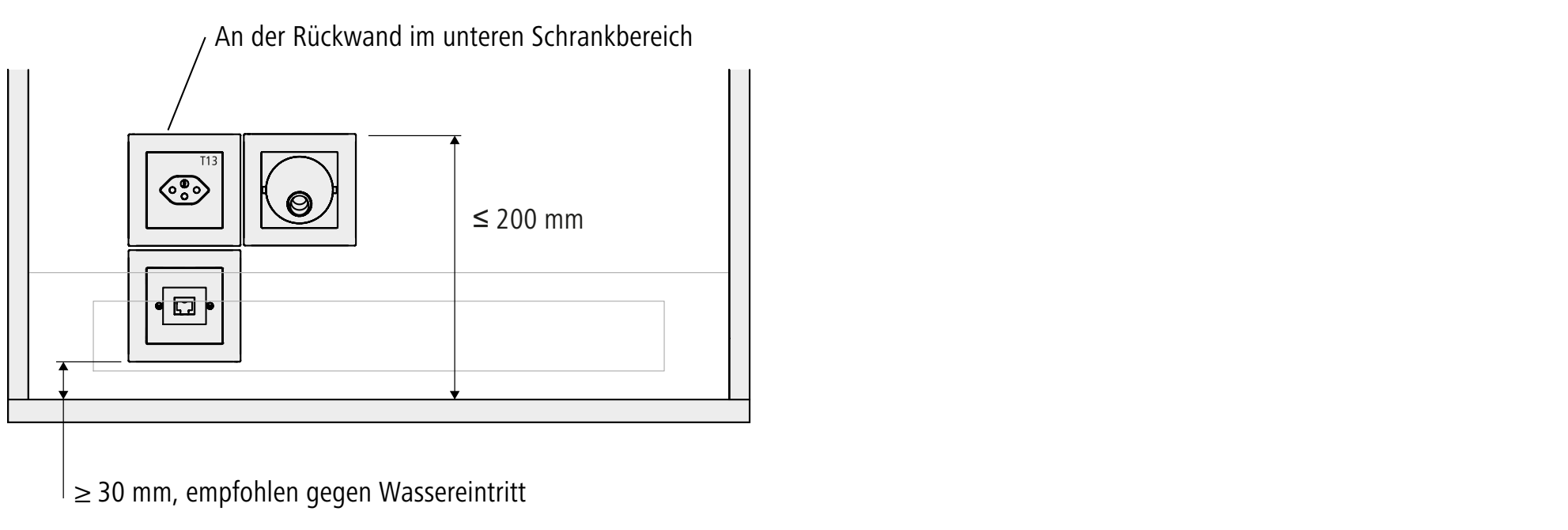 Bei Schrankeinbau des Geräts: Falls die Steckdose T13 und weitere Steckdosen (z. B. für den Netzwerkanschluss) ebenfalls im Schrank installiert werden, ist aus Platzgründen die Verwendung von Unterputzdosen erforderlich.