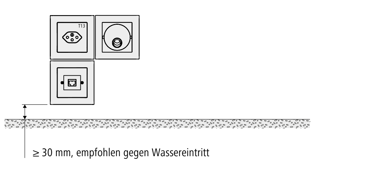 Bei Schrankeinbau des Geräts: Falls die Steckdose T13 und weitere Steckdosen (z. B. für den Netzwerkanschluss) ebenfalls im Schrank installiert werden, ist aus Platzgründen die Verwendung von Unterputzdosen erforderlich.