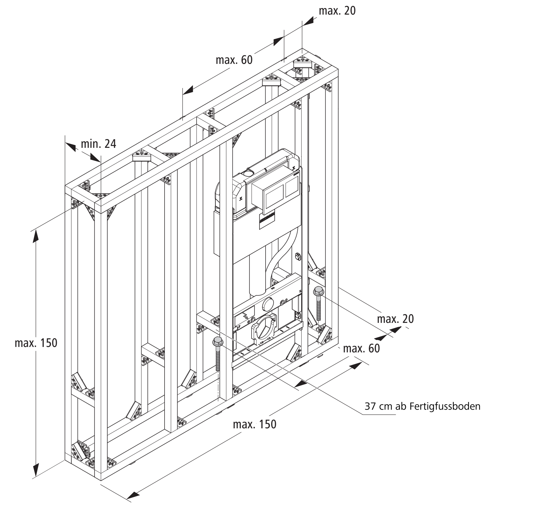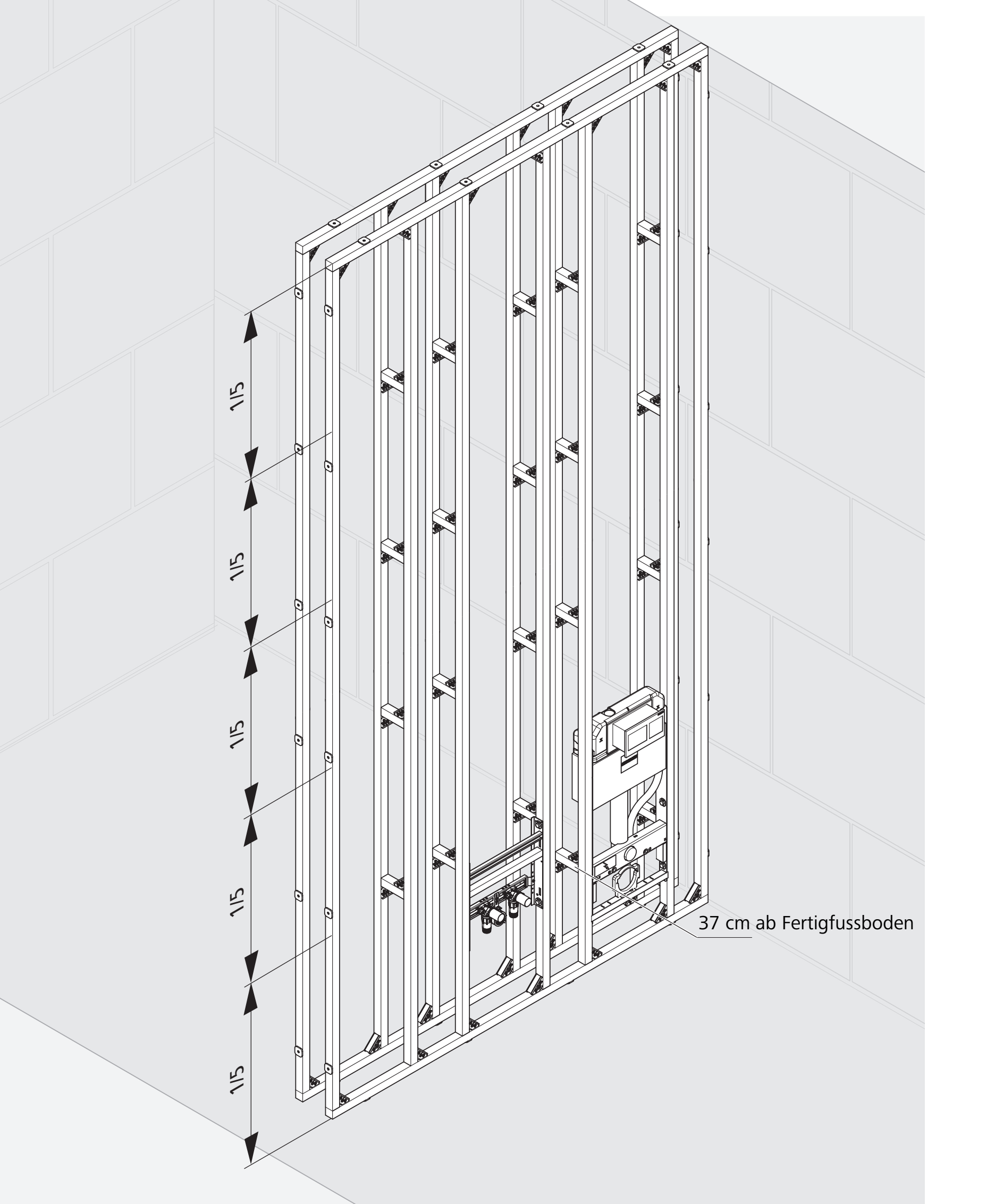 Bei einem WC-Modul ist links und rechts auf einer Höhe von ca. 37 cm jeweils eine horizontale Verbindung erforderlich. Die nächste Verbindung darf max. 120 cm höher sein.