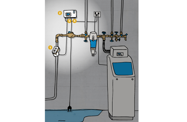 Dans ses deux versions, le contacteur de contrôle d’écoulement détecte une fuite d’eau dans la conduite. Après le montage du contacteur d’écoulement et le branchement sur le contrôleur, le capteur est opérationnel. Si un important volume d’eau s’échappe (incident), le robinet d’arrêt correspondant coupe automatiquement le passage de l’eau.