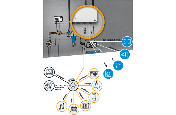 un avertisseur sonore, connexion à une borne SPS numérique pour la commande de plusieurs éléments modules moteurs, intégration à l’automatisme du bâtiment au moyen d’un système de bus: commande à distance, intégration dans des installations complexes.