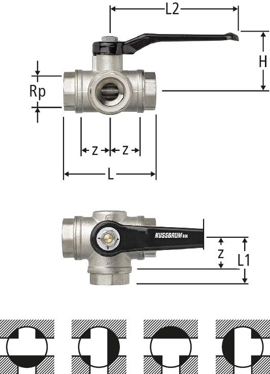 | Rp | z | L | L1 | L2 | H | Kvs | Art. n° | VE | RK | VE | suissetec | ||