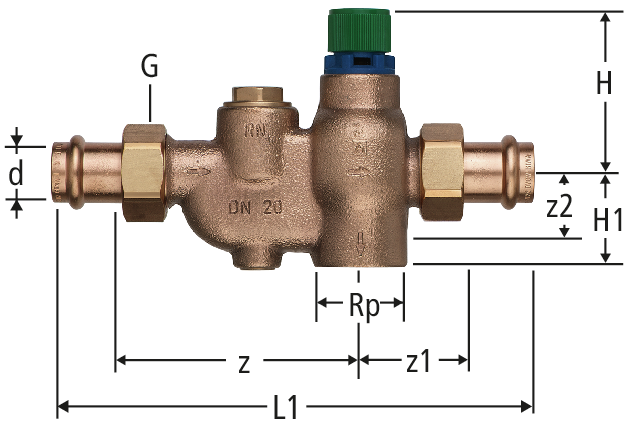 | Rp | G | d | z | z1 | z2 | L1 | H | H1 | bar | Art. n° | VE | RK | VE | suissetec | |||||