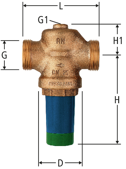 | DN | G | G1 | D | L | H | H1 | bar | Art. n° | RK | VE | suissetec | ||