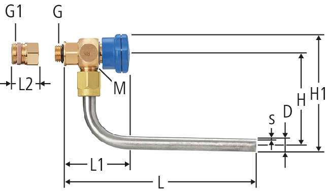 | G | G1 | M | D | s | L | L1 | L2 | H | H1 | Kvs | Art. n° | RK | VE | suissetec | ||||