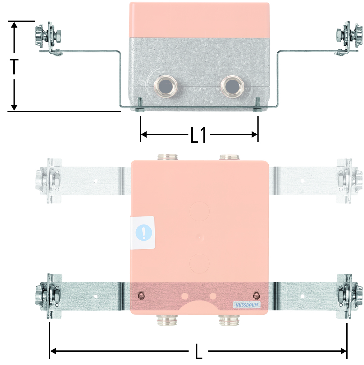 Remarque: 2 gabarits de montage sont nécessaires par boîtier. Pour la combinaison d'un boîtier robinetterie à montage caché ou boîtier lavabo à montage caché avec un boîtier distributeur Optiflex, il est recommandé d'utiliser un troisième gabarit de montage.