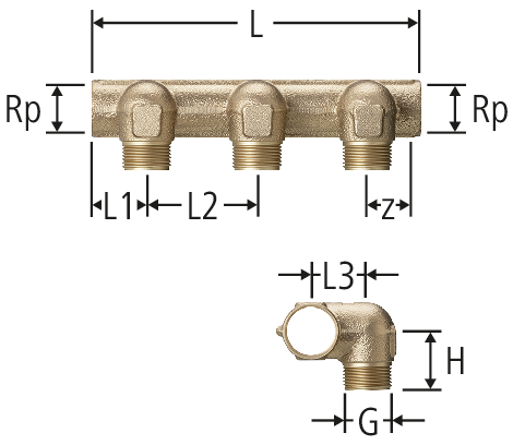 | DN | Rp | G | z | L | L1 | L2 | L3 | H | N | ζ | Art. n° | VE | RK | VE | suissetec | |||||