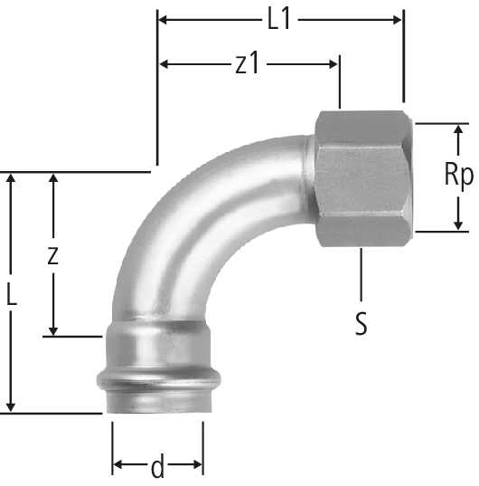 | Rp | d | z | z1 | L | L1 | W | S | ζ | Art. n° | CHF | RK | VE | suissetec | |||||