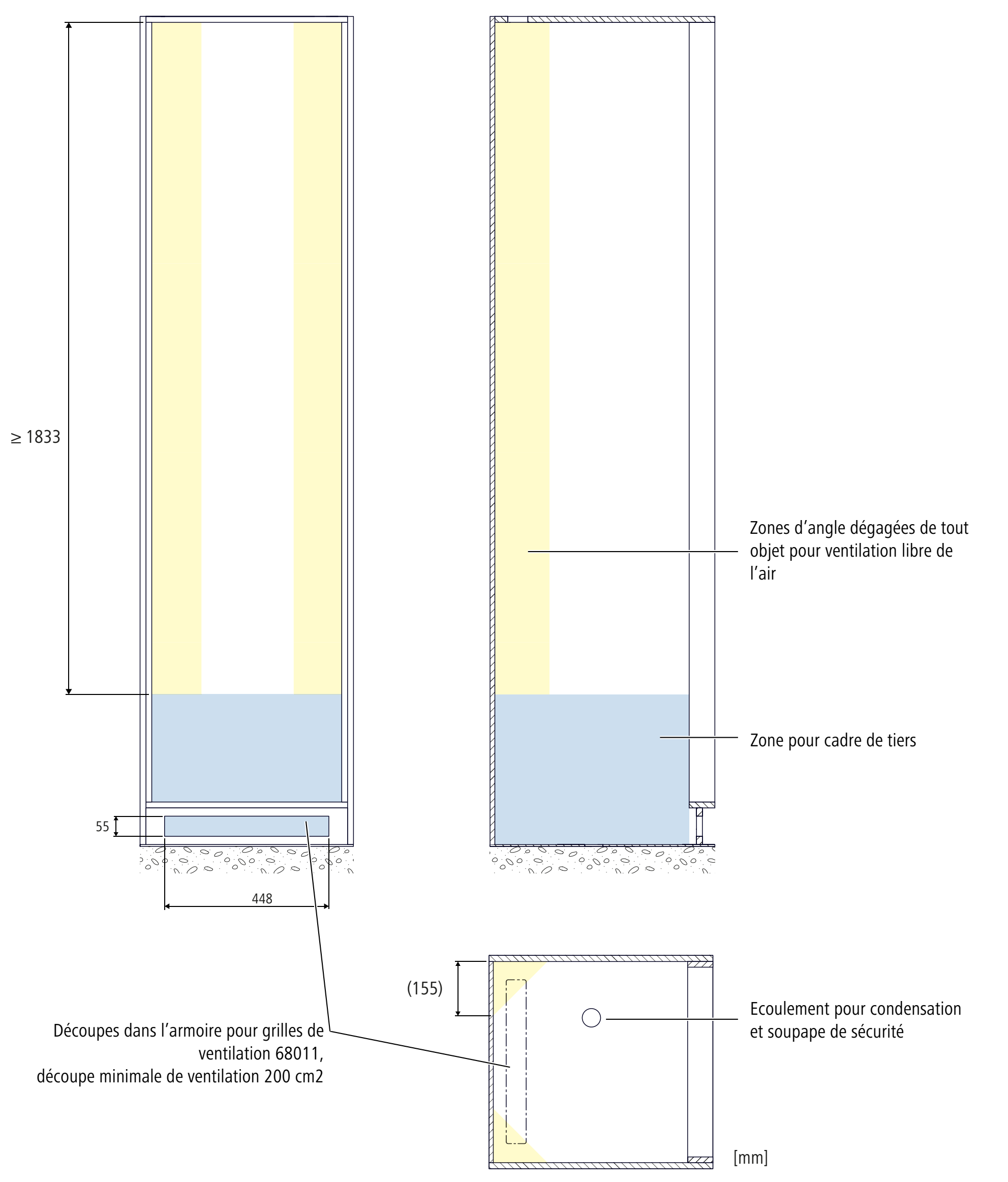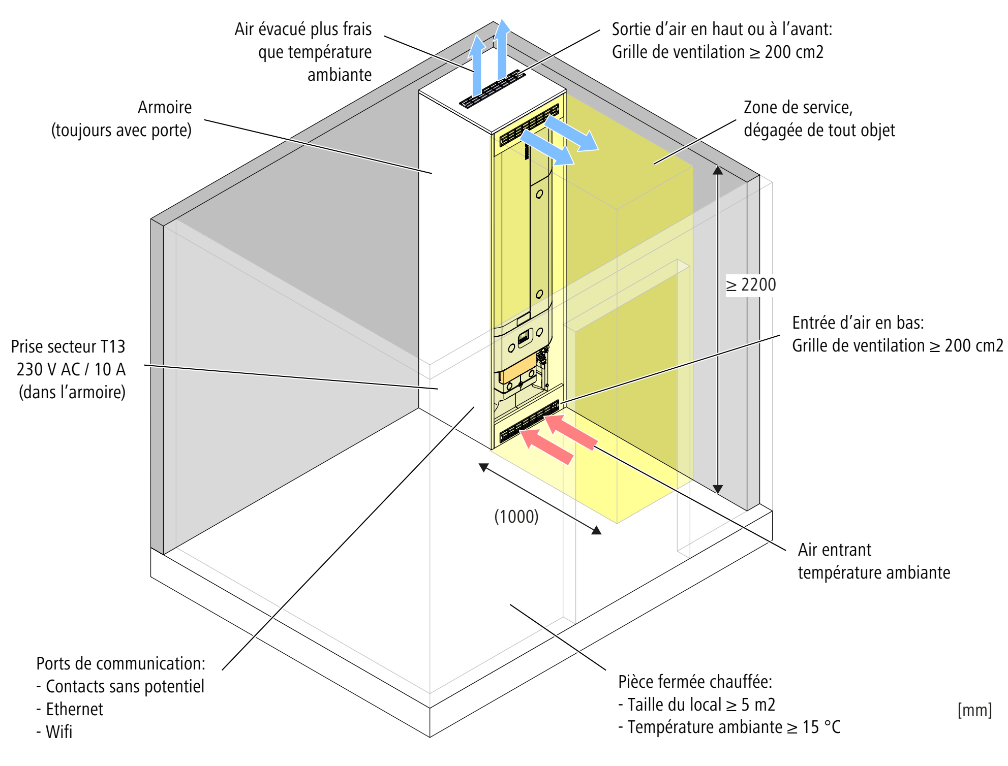 Selon la situation de montage, il faut accroître l’étanchéité de l’armoire pour empêcher une inversion des fluides (aspiration de l’air sortant) due à la présence d’ouvertures.