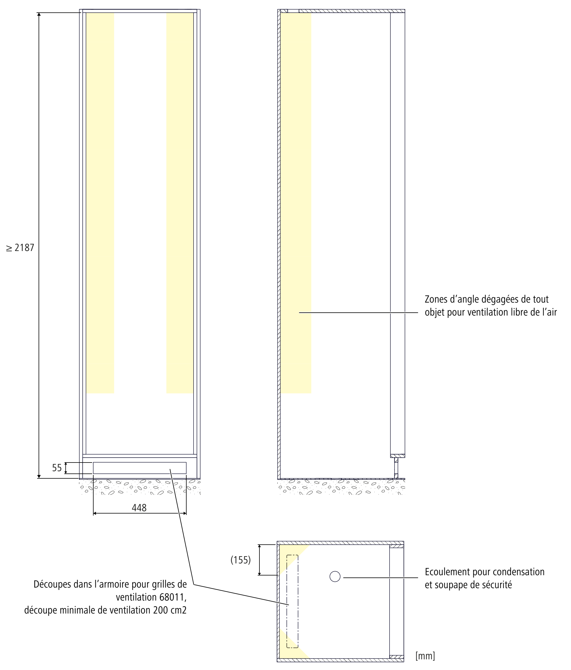 Selon la situation de montage, il faut accroître l’étanchéité de l’armoire pour empêcher une inversion des fluides (aspiration de l’air sortant) due à la présence d’ouvertures.
