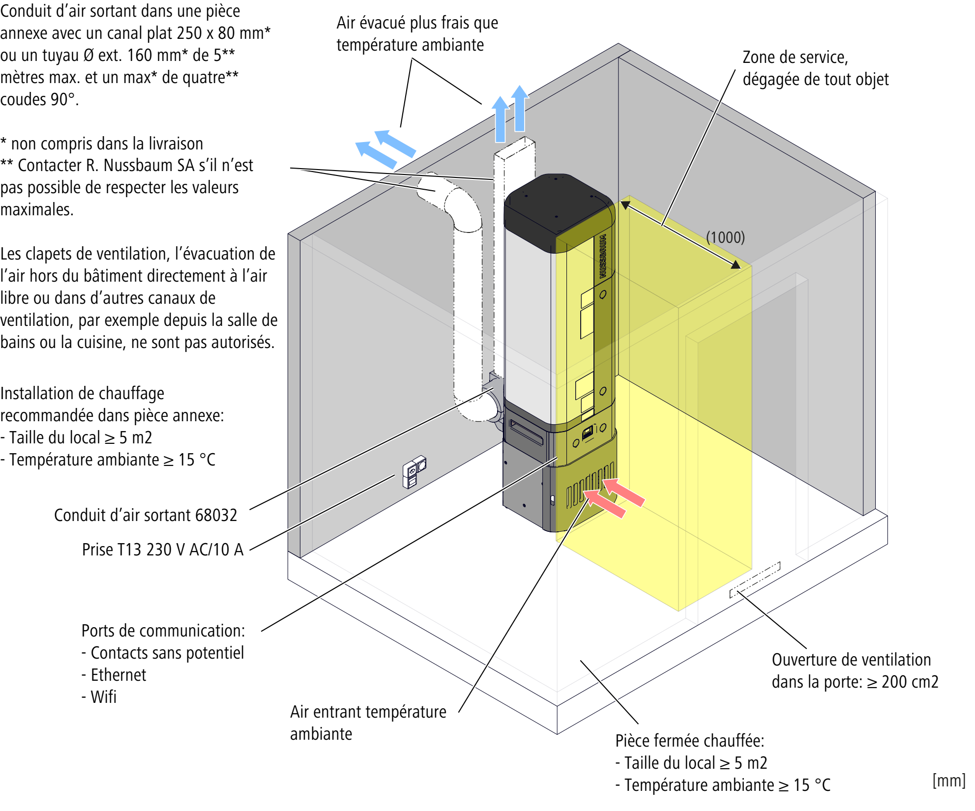 Nussbaum ou une personne formée parNussbaum sont habilités à activer l’appareil pour un fonctionnement normal avec pompe à chaleur. -