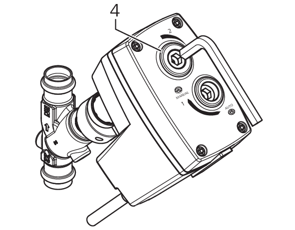 - L’actuateur est désormais désolidarisé du moteur électrique. Le robinet peut être actionné manuellement.