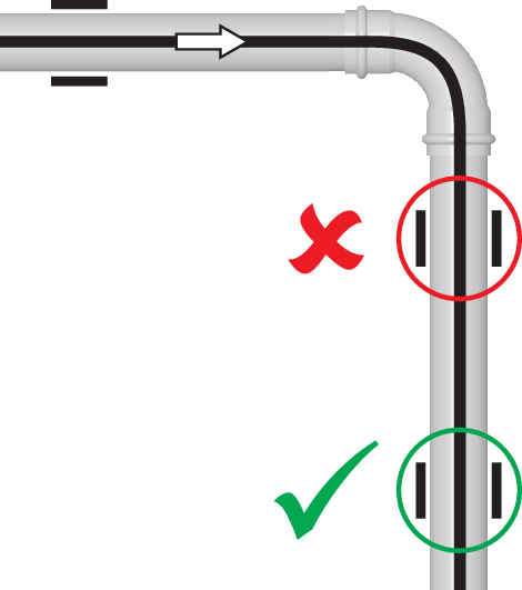 Ne jamais absorber la dilatation sur des segments de tuyau courts.