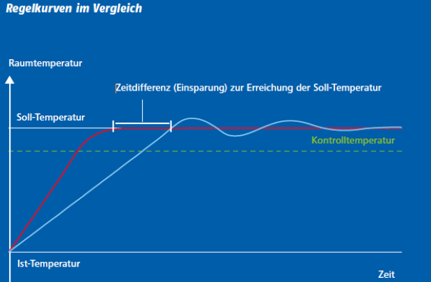Le contrôle continu exercé par Therm-Control minimise tout dépassement ou soupassement de la courbe de régulation. Cette compensation des circuits de chauffage s’effectue aussi à l’échelle de toutes les pièces et assure une compensation thermique permanente de tous les circuits de chauffage. Les temps de retard sont ainsi considérablement réduits, ce qui rend la compensation manuelle superflue.