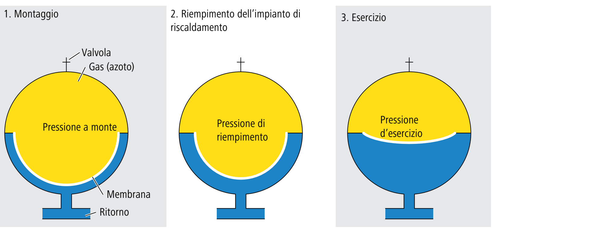 Negli impianti di riscaldamento, la variazione di volume dell’acqua in caso di variazioni di temperatura deve essere compensata con l’ausilio di dotazioni tecniche.