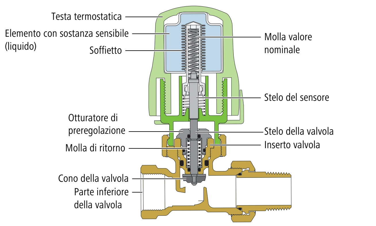 Gli impianti di riscaldamento con una potenza fino a 50 kW vengono generalmente riempiti con acqua potabile. Il collegamento dell’impianto di riscaldamento all’impianto di acqua potabile deve essere realizzato in modo tale da impedire la contaminazione dell’impianto di acqua potabile con l’acqua di riscaldamento a causa di differenze di pressione tra le due reti di tubazioni. I dispositivi di protezione dell’acqua potabile necessari a questo tale sono definiti nella norma EN 1717. Inoltre, se necessario, durante il riempimento l’acqua potabile viene trattata per l’utilizzo come termovettore per evitare corrosione (ruggine) e depositi di sostanze (calcare). Il trattamento avviene secondo le direttive VDI 2035 e SITC BT102-01. Per questi scopi sono disponibili diversi componenti di tubazioni, fra cui rubinetteria d’arresto, combinazioni per riempimento dell’impianto di riscaldamento e valvole di ritegno.