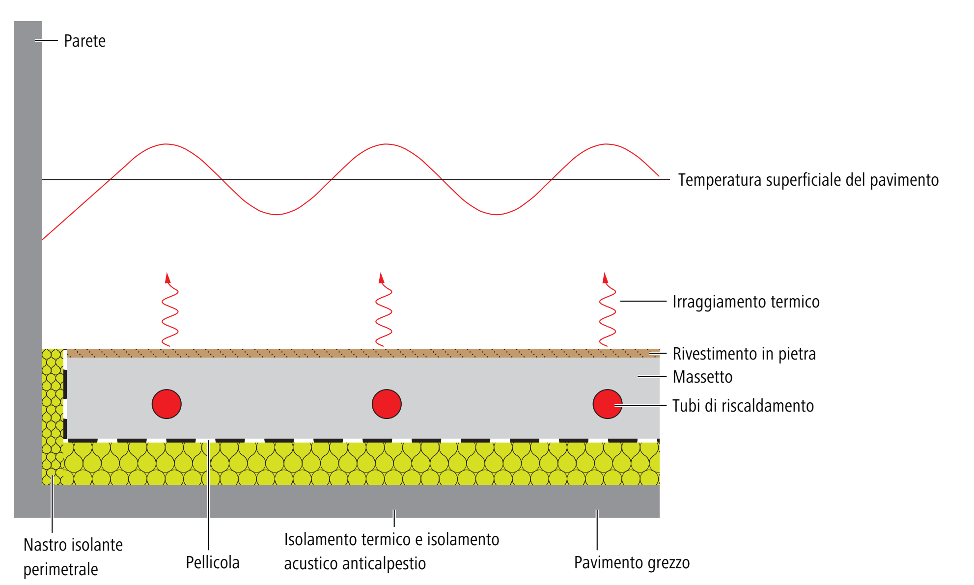 Come tubi di riscaldamento possono essere impiegate le stesse tipologie di tubi utilizzate per la realizzazione di impianti di acqua potabile. È possibile utilizzare tubi in acciaio, tubi in rame, tubi in materiale sintetico e tubi multistrato in materiale composito.