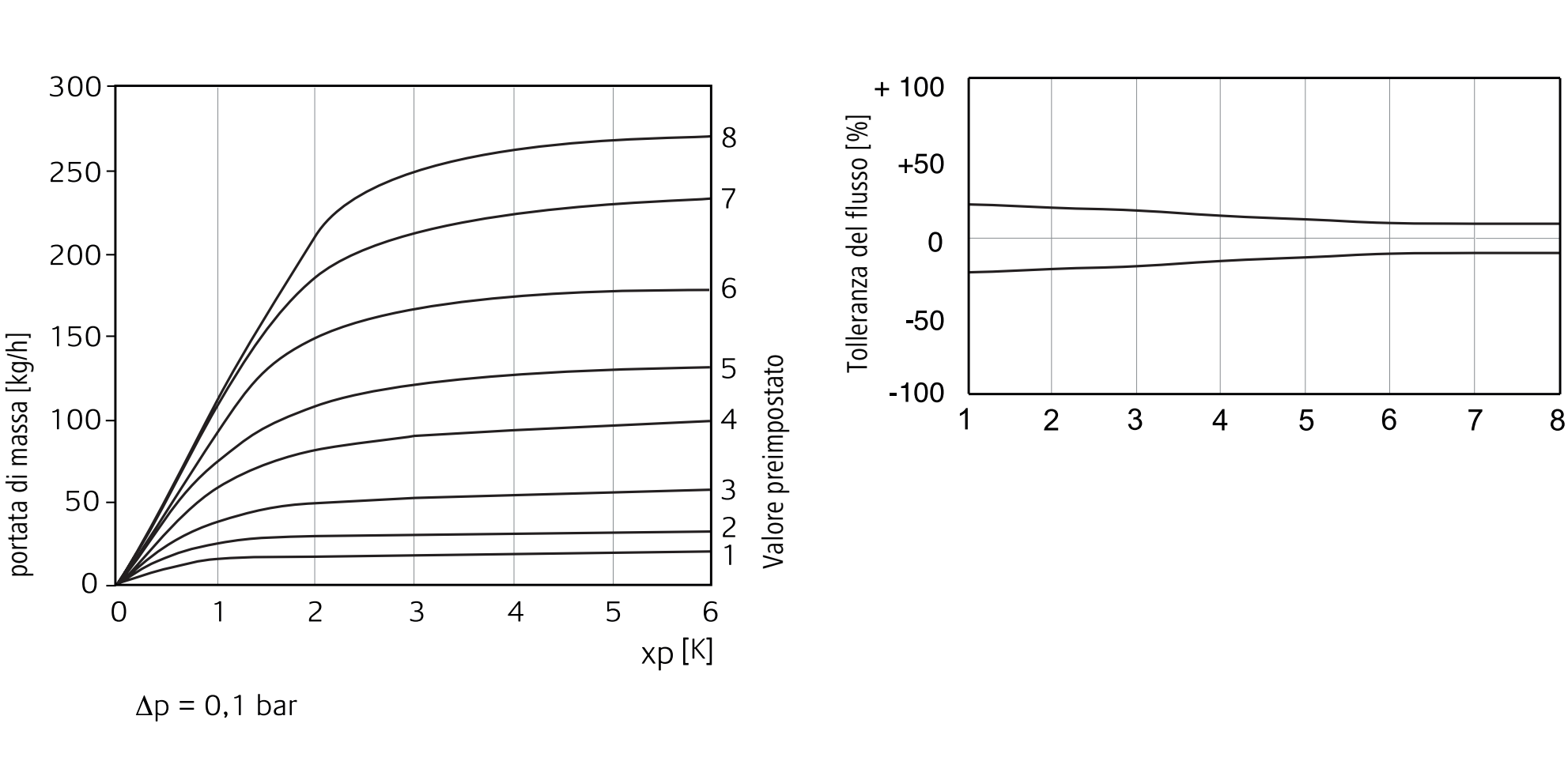 Pagina principale Pianificazione Documenti Tecnici Scheda tecnica - Valvole termostatiche V-exact Diagramma limitazione del flusso Scheda tecnica - Valvole termostatiche V-exact 55220, 55221, 55223, 55224, 55226, 55228, 55229 Scaricare il documento come PDF Indice 1 Costruzione e materiali 2 Descrizione del prodotto 3 Dati tecnici 4 Valori di potenza 5 Diagramma limitazione del flusso 6 Diagramma perdita di pressione 7 Compatibilità delle teste termostatiche con articoli di produttori terzi Scaricare il documento come PDF 261.0.141 / V1 5 Diagramma limitazione del flusso Diagramma limitazione del flusso e tolleranza del flusso Ritorno Continuare