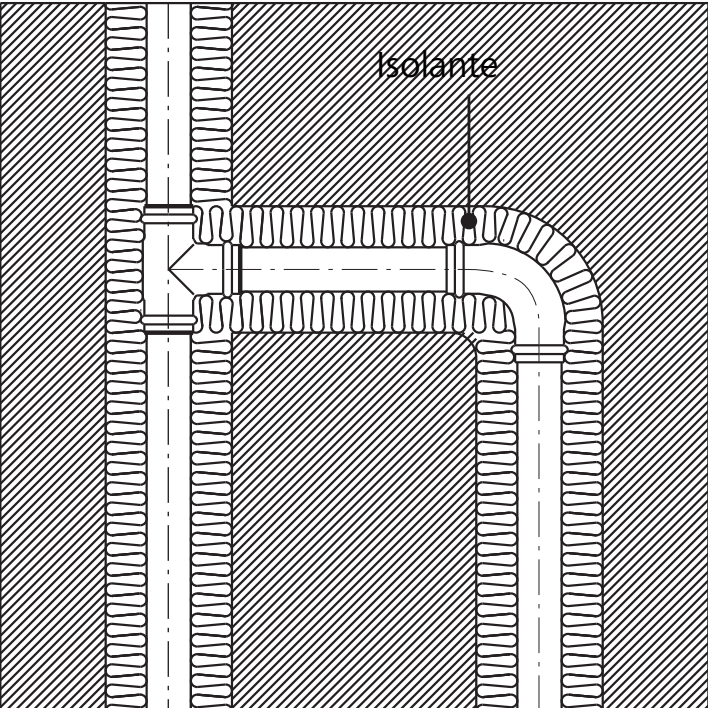 Per l’installazione di tubazioni al soffitto, premurali o in vani tecnici è necessario prevedere uno spazio di dilatazione sufficiente. Per tubi posati sotto muro, lo spazio di dilatazione può essere garantito attraverso isolanti elastici.