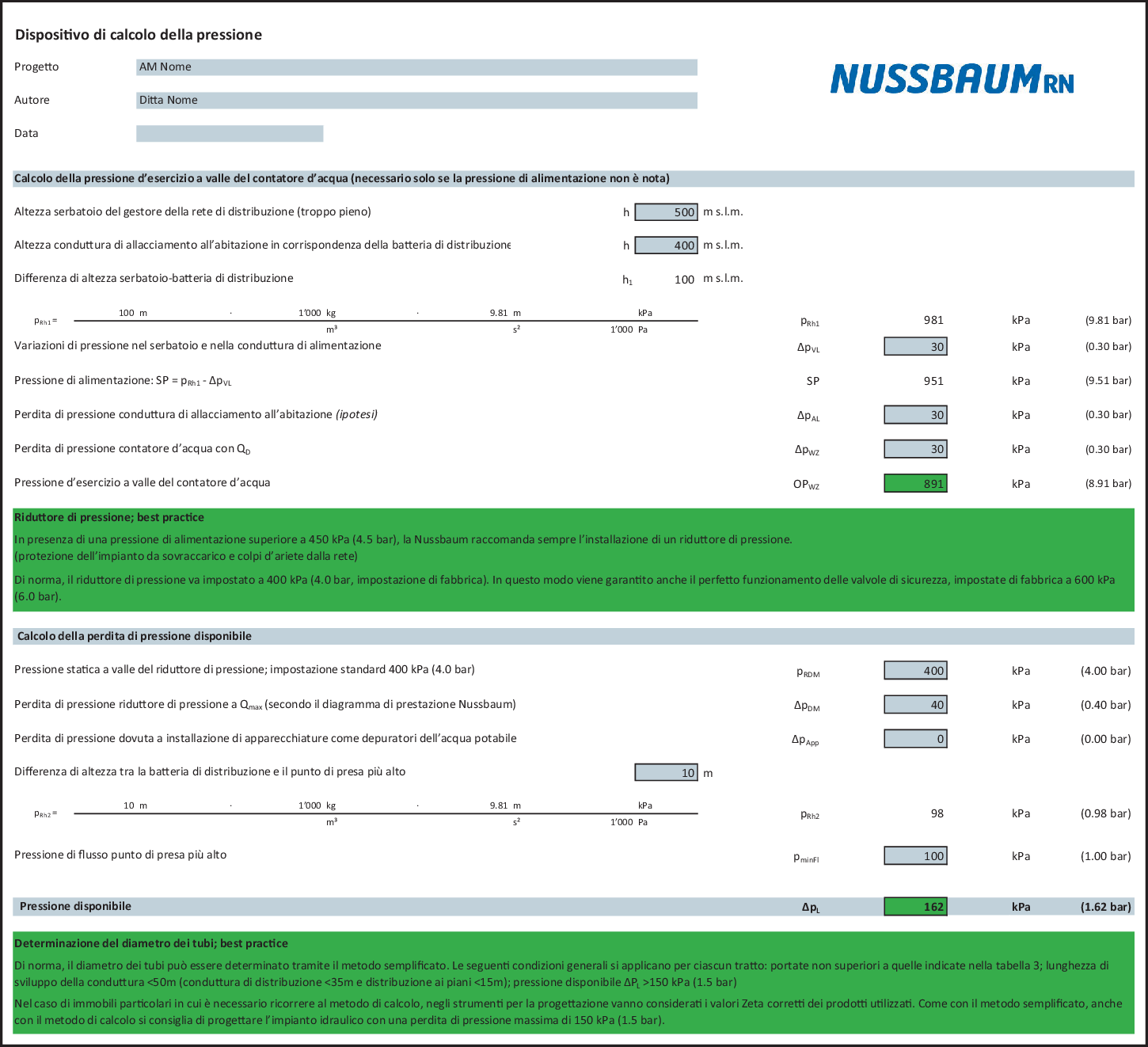 Condizioni di pressione negli impianti di acqua potabile in conformità alla direttiva W3:2013 2.1.4 della SVGW